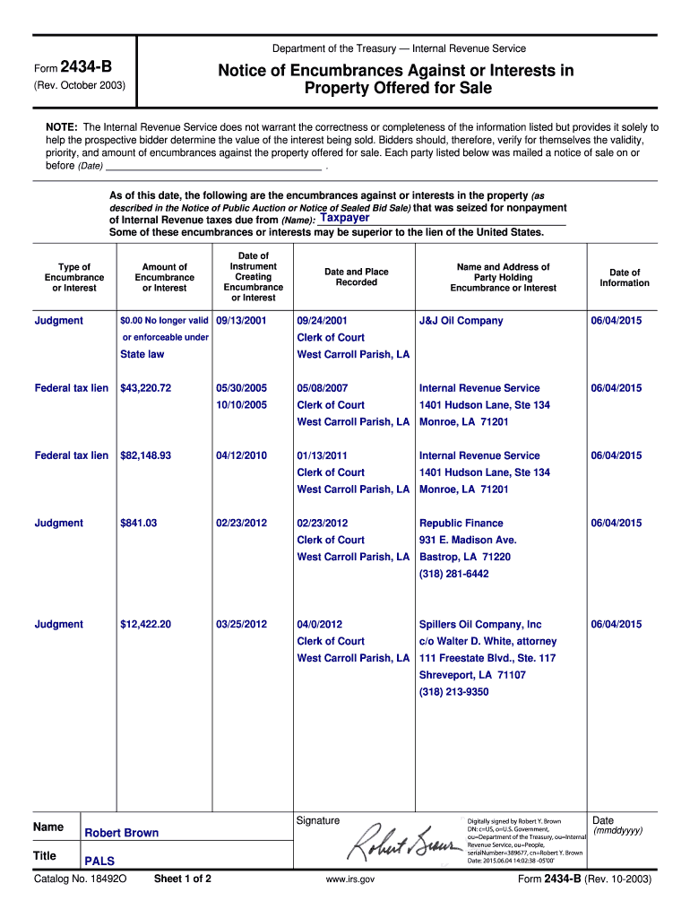 06/04/2015 or enforceable ... Revenue Code states that a certificate of sale of personal property ... period, the Area Director shall, upon receipt of the certificate of.