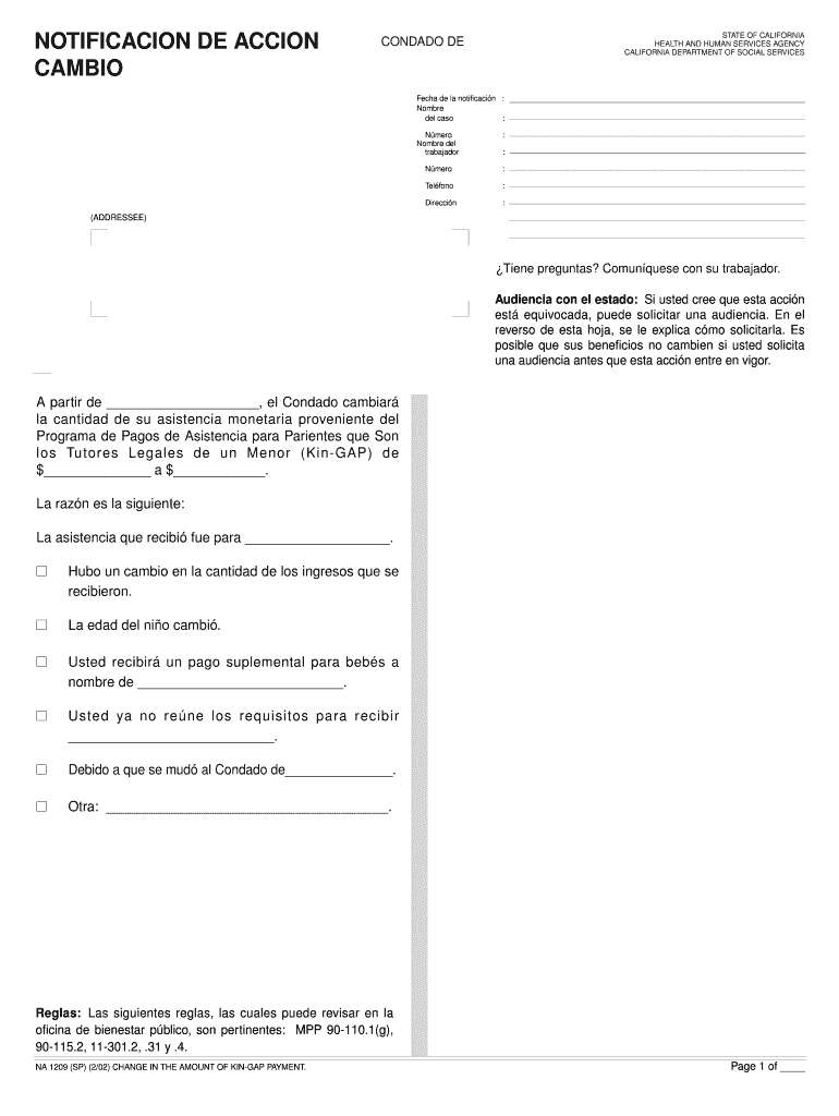 Get the free NA 1209 SP - California Department of Social Services - dss cahwnet