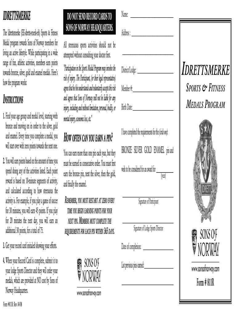 IDRETTSMERKE The Idrettsmerke (EEdrettsmerkeh) Sports & Fitness Medal program rewards Sons of Norway members for living an active lifestyle. While participating in a wide range of fun, athletic activities,