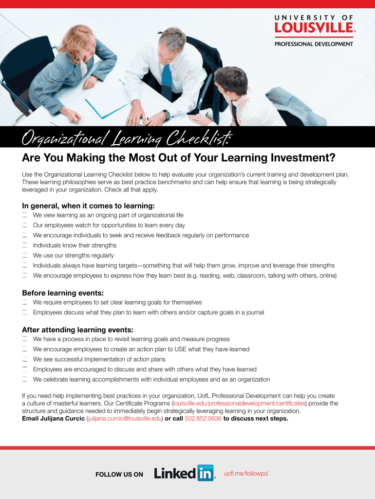 Get the free Organizational Learning Checklist: - louisville