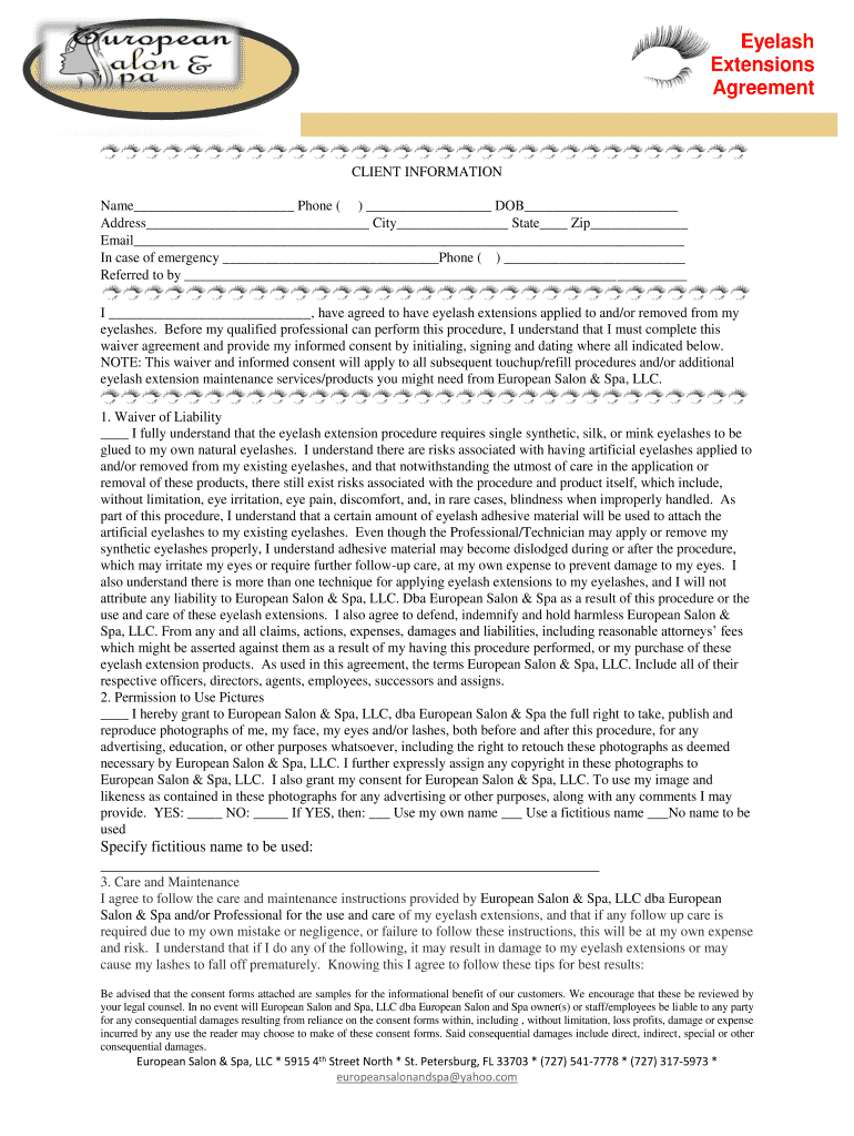 Eyelash Extensions Agreement & ************************************************************************************* *************************************************************************************