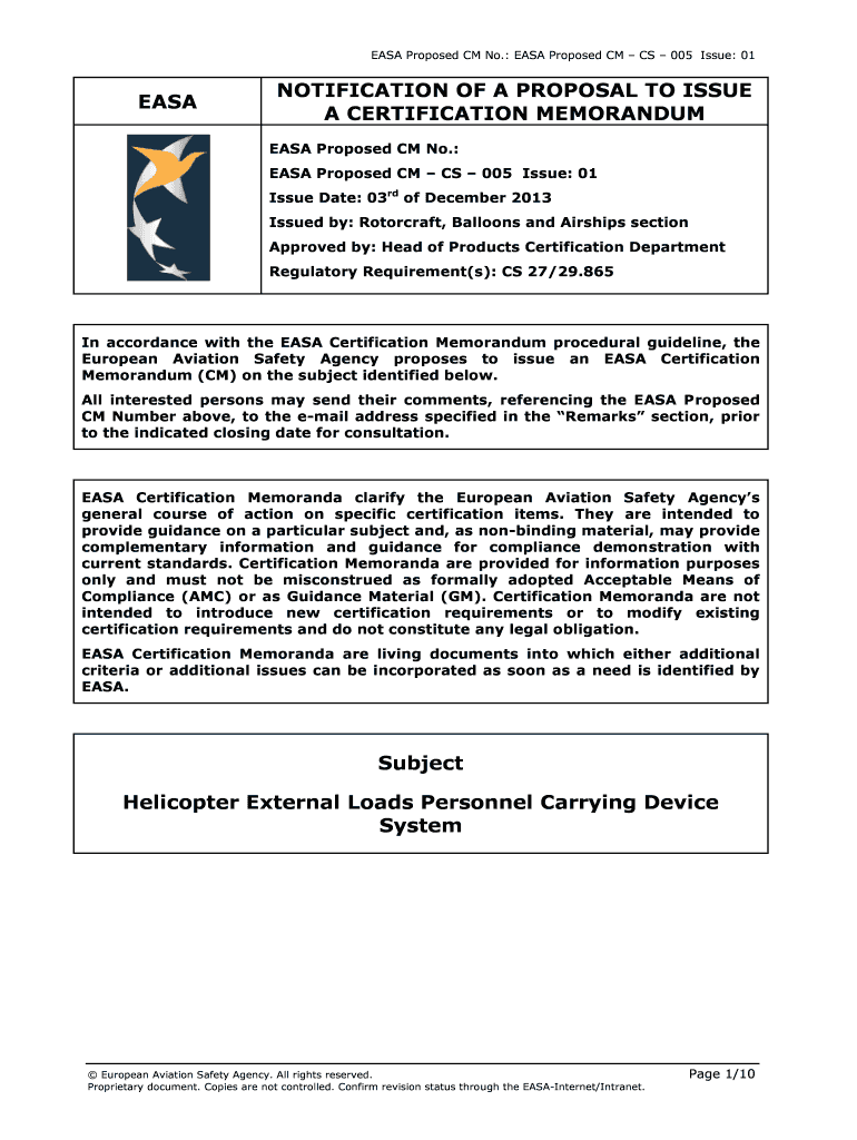 EASA Proposed CM No.: EASA Proposed CM CS 005 Issue: 01EASANOTIFICATION OF A PROPOSAL TO ISSUE A CERTIFICATION MEMORANDUM EASA Proposed CM No.: EASA Proposed CM CS 005 Issue: 01 Issue Date: 03rd of