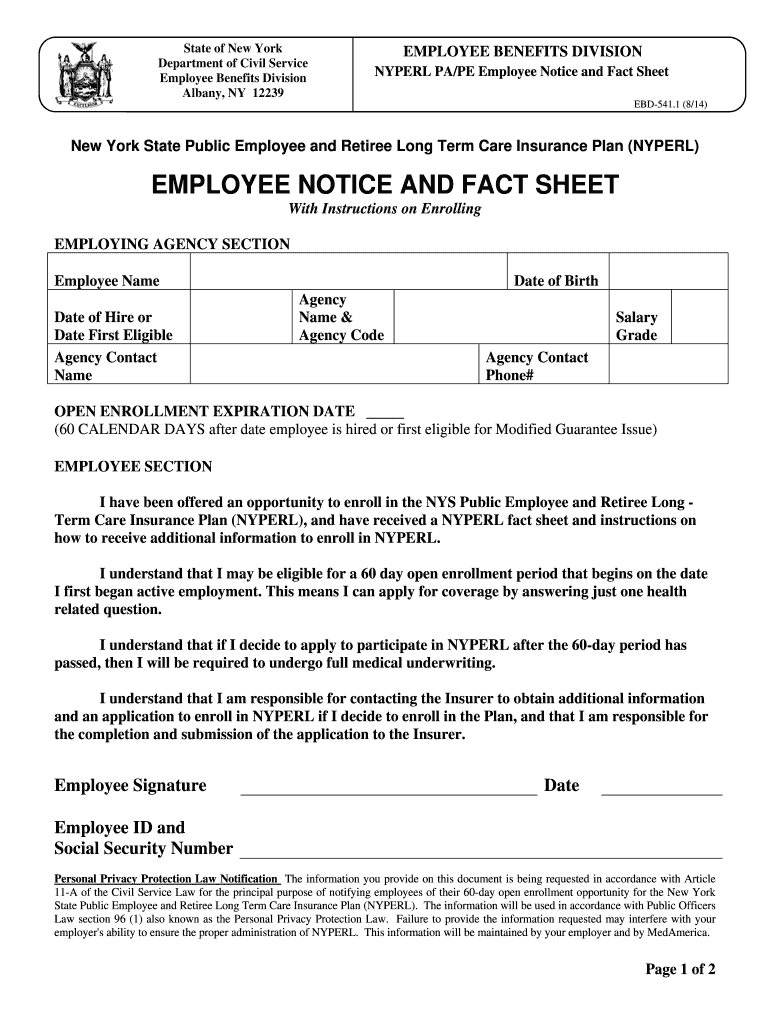 And an application to enroll in NY PERL if I decide to enroll in the Plan, and ... In 2012, the NYS Partnership for Long-Term Care estimated the average nursing.