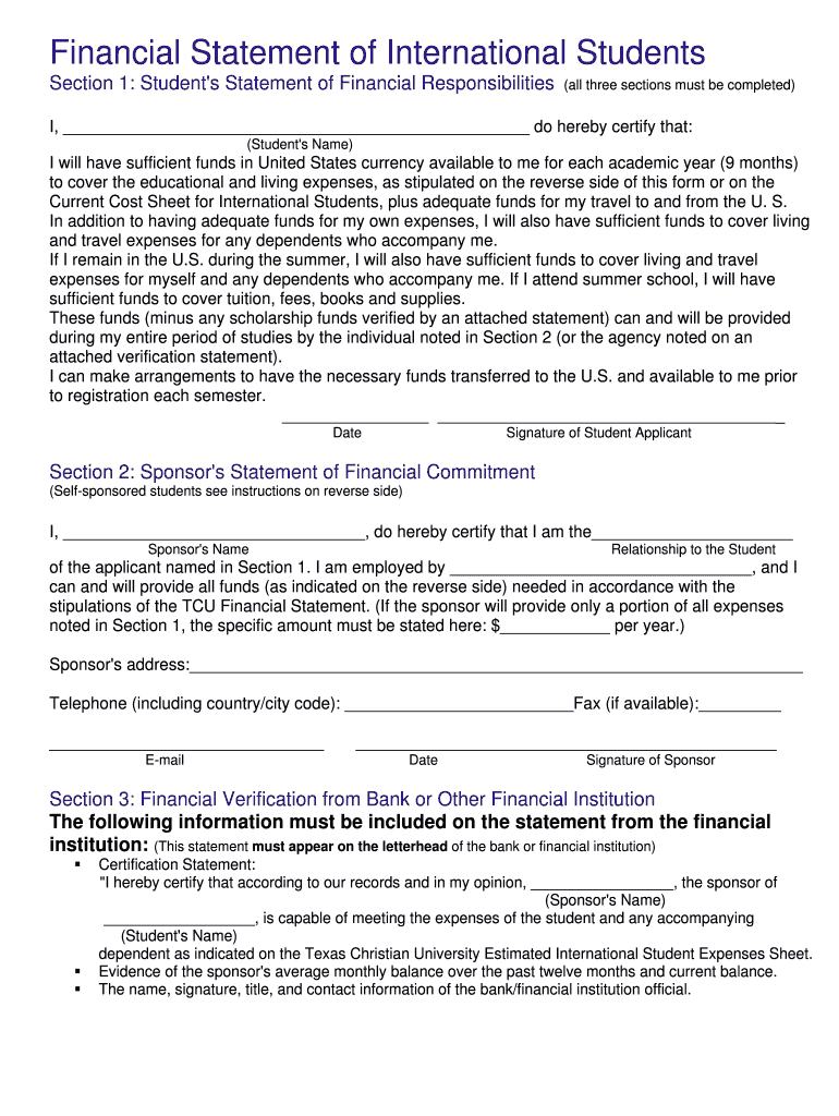 Get the free Financial Statement of International Students - epay tcu