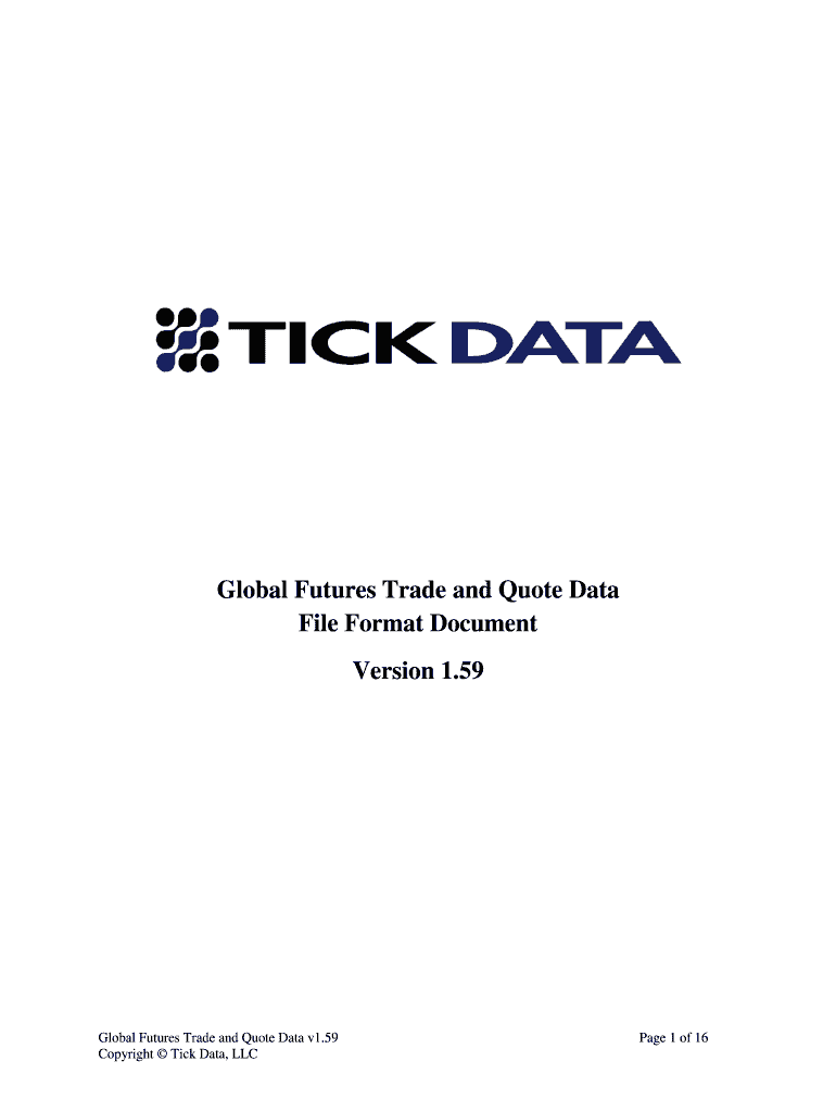 Global Futures Trade and Quote Data File Format Document Version 1.59Global Futures Trade and Quote Data v1.59 Copyright Tick Data, LLC Page 1 of 16Table of Contents Trade Data .......................................................................................................................................
