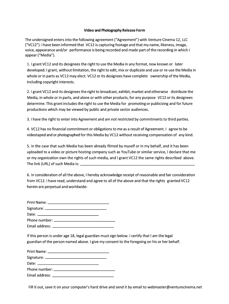 Get the free Video and Photography Release Form - venturecinema