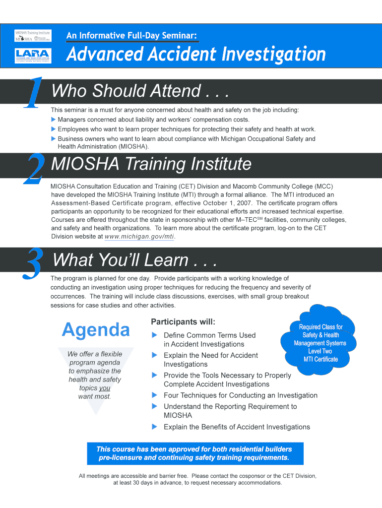 Get the free Advanced Accident Investigation. October 20, 2016 Ann Arbor, Michigan