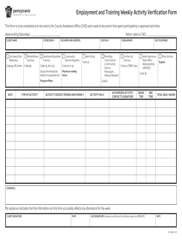 Get the free Employment and Training Weekly Activity Verification Form - services dpw state pa