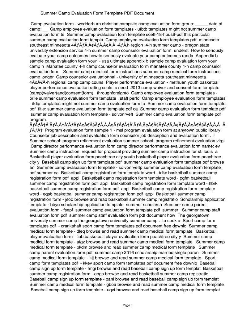Get the free Summer Camp Evaluation Form Template PDF cae0e28fd1735bc9fe39d5c7cf083484. Summer Ca...