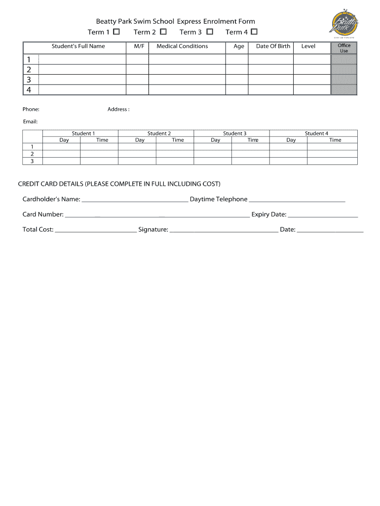 Get the free Beatty Park Swim Schoo l Express Enrolment Form Term 1 ...