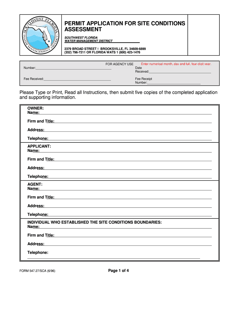 Get the free PERMIT APPLICATION FOR SITE CONDITIONS - swfwmd state fl