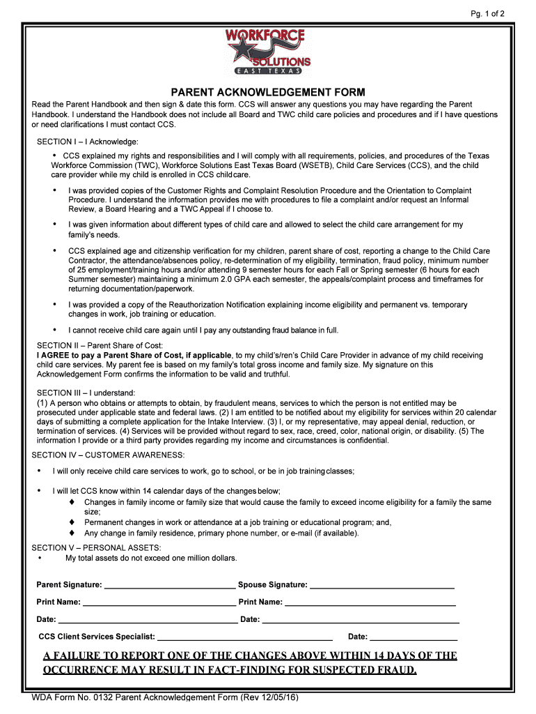 Read the instructions provided with the 2 parent acknowledgement form thoroughly.