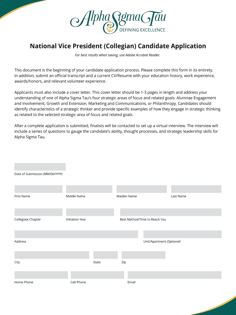 The national vice president collegian form can usually be filled out electronically or by submitting a physical form provided by the organization.