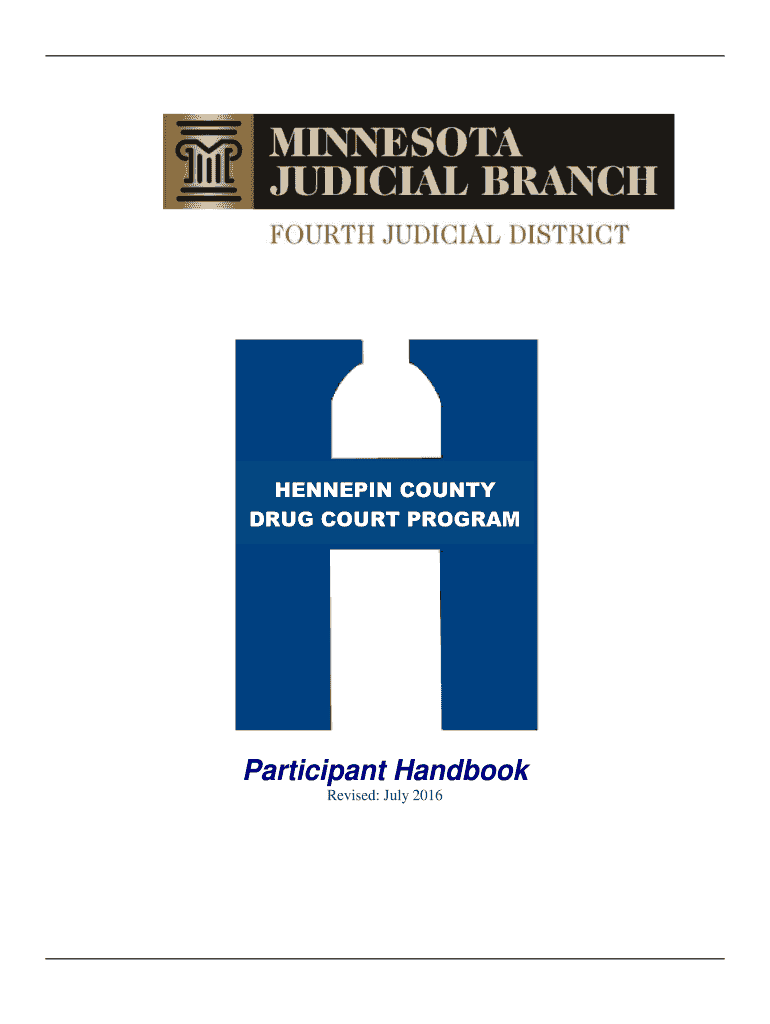 HENNEPIN COUNTY DRUG COURT PROGRAM Participant Handbook Revised: July 2016 This Book Belongs To: Name Welcome to the Hennepin County Drug Court program! You chose to participate in the Hennepin County