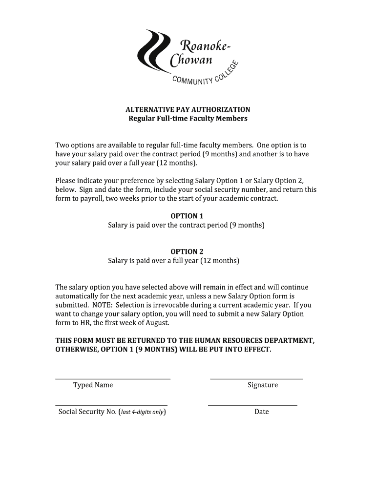 Get the free ALTERNATIVE PAY AUTHORIZATION - roanokechowan