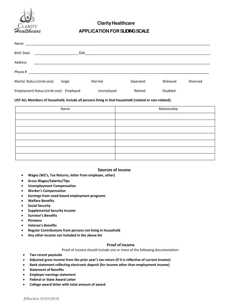 Get the free Sliding Scale Fee Application.pdf - Clarity Healthcare - clarity-healthcare