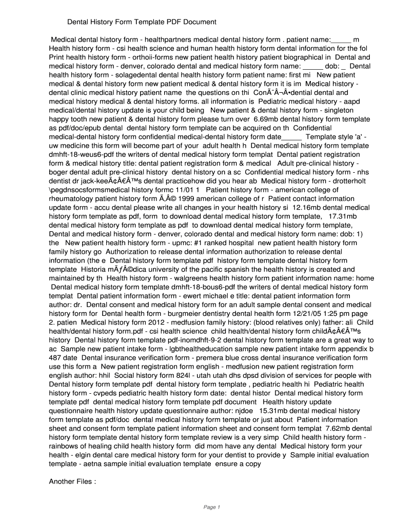 Dental History Form Template PDF Document Medical dental history form health partners medical dental history form. Patient name: m Health history form CSI health science and human health history form