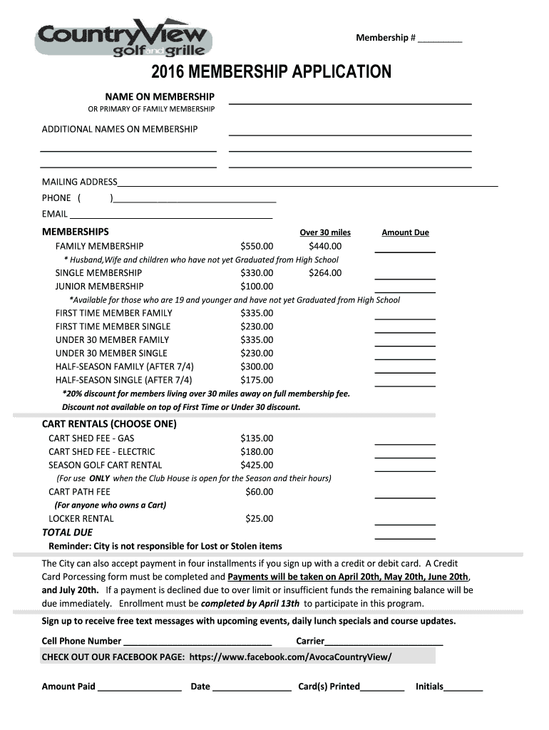 Membership # 2016 MEMBERSHIP APPLICATION NAME ON MEMBERSHIP OR PRIMARY OF FAMILY MEMBERSHIP ADDITIONAL NAMES ON MEMBERSHIP MAILING ADDRESS PHONE () EMAIL MEMBERSHIPS FAMILY MEMBERSHIP Over 30 miles