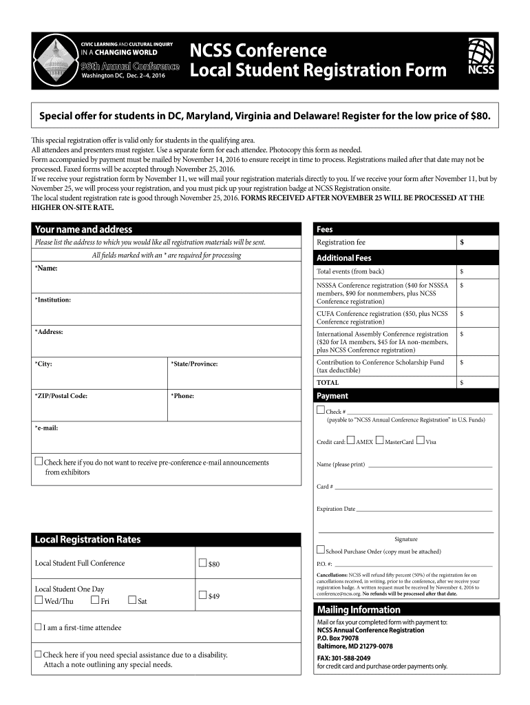 Get the free NCSS Conference Local Student Registration Form - socialstudies