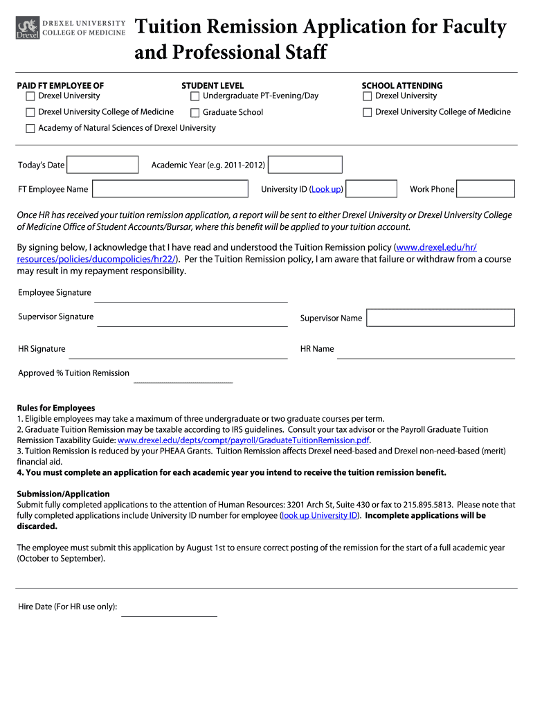 Get the free Tuition Remission Application for Faculty and ... - Drexel University - drexel