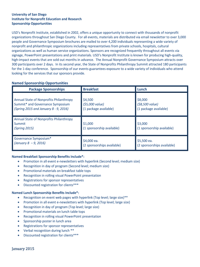 Get the free Named Sponsorship Opportunities Package - University of San ... - sandiego