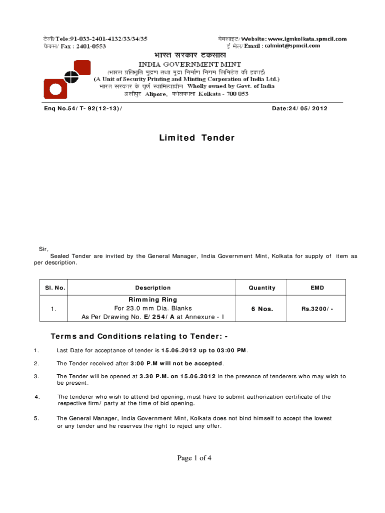 Get the free Limited Tender - spmcil.com