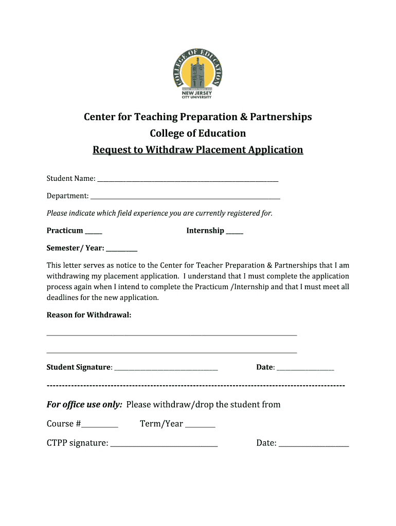 Get the free Request to Withdraw Placement - njcu