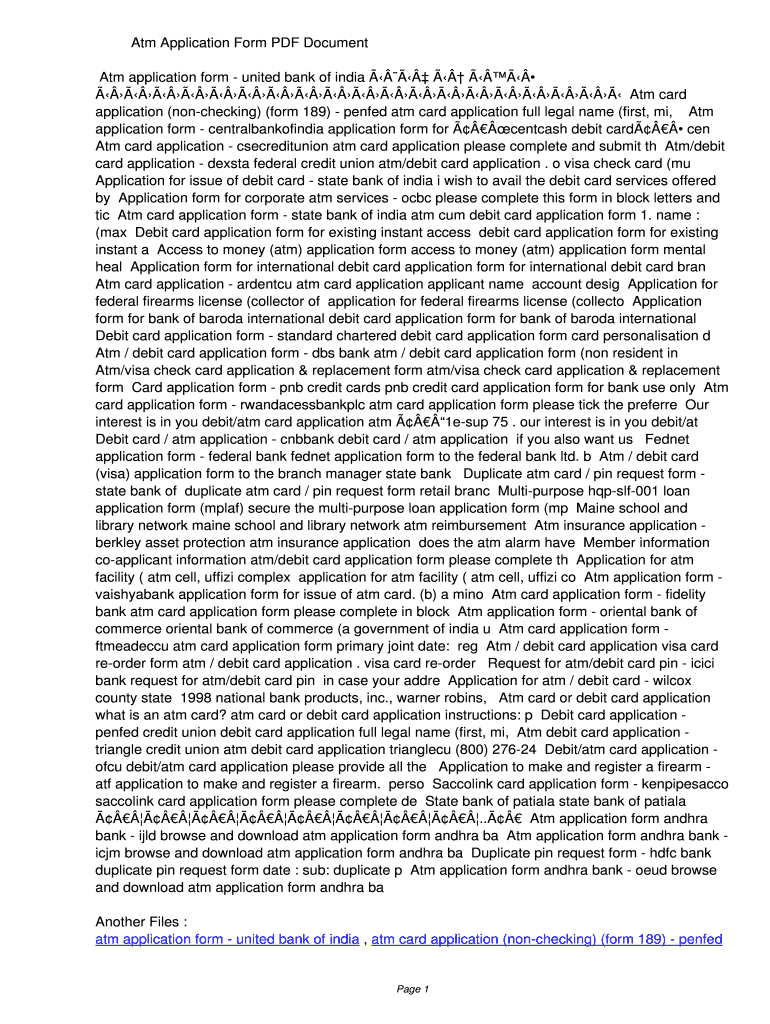 ATM Application Form PDF Document ATM application form united bank of India ATM card application (nonchecking) (form 189) penned ATM card application full legal name (first, mi, ATM application form
