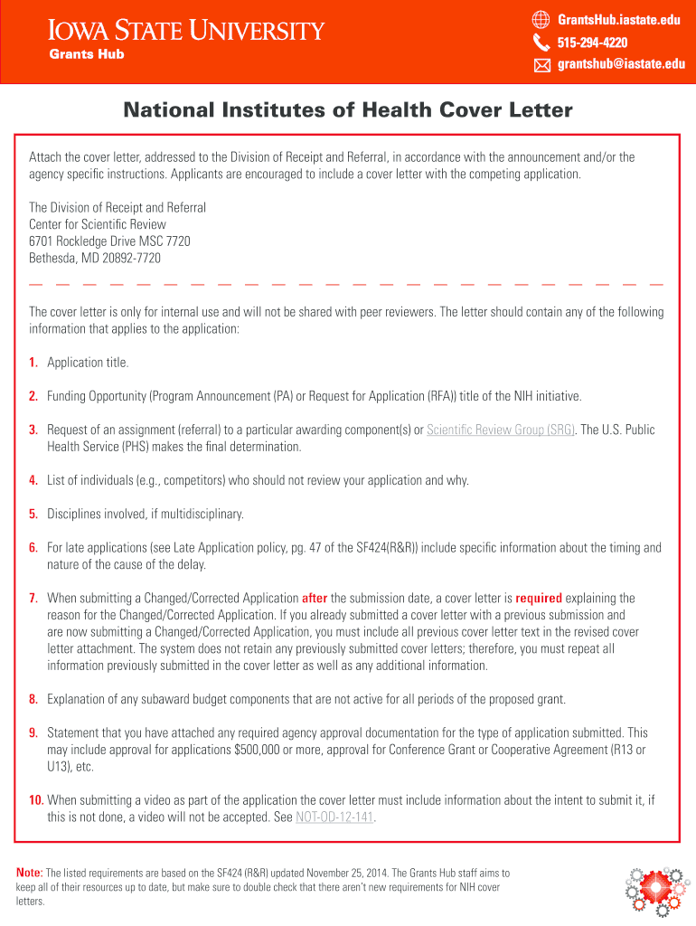 grants hub×instate.educational Institutes of Health Cover Letter
