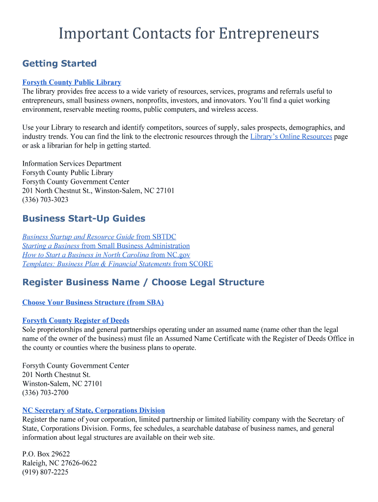 Important Contacts For Entrepreneurs is not the form you're looking for?Search for another form here.