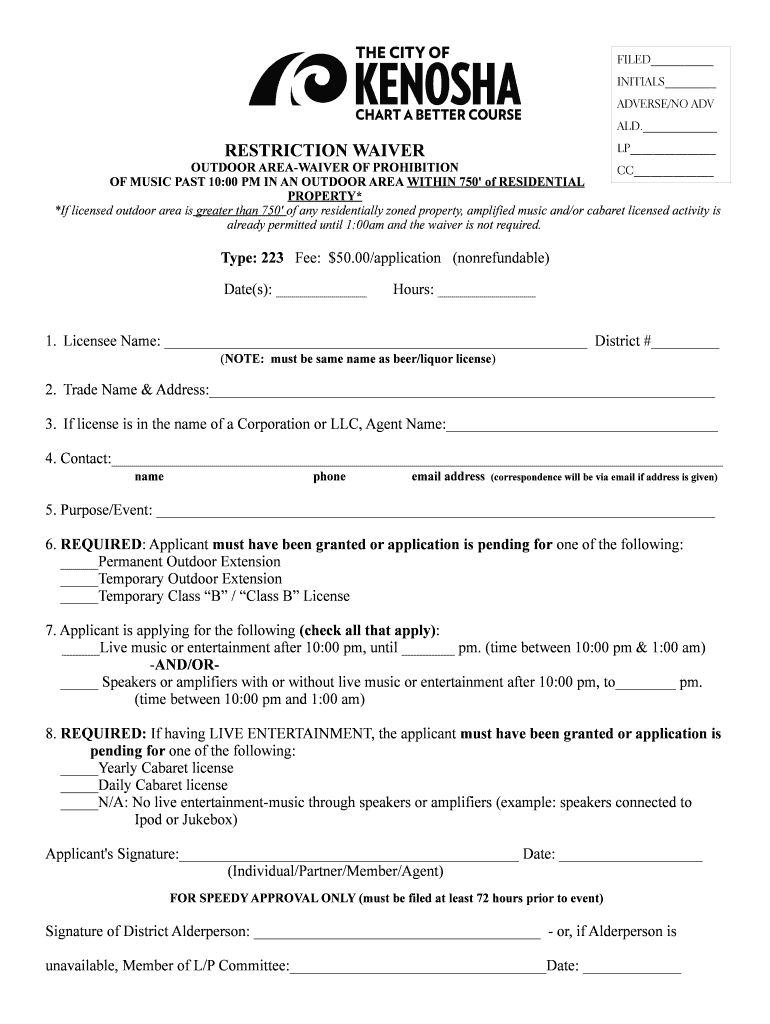 Get the free RESTRICTION WAIVER - kenosha