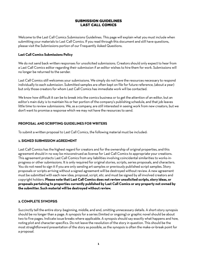 Welcome to the Last Call Comics Submissions Guidelines. This page will explain what you must include when