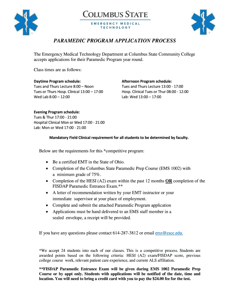Get the free PARAMEDIC PROGRAM APPLICATION PROCESS - cscc