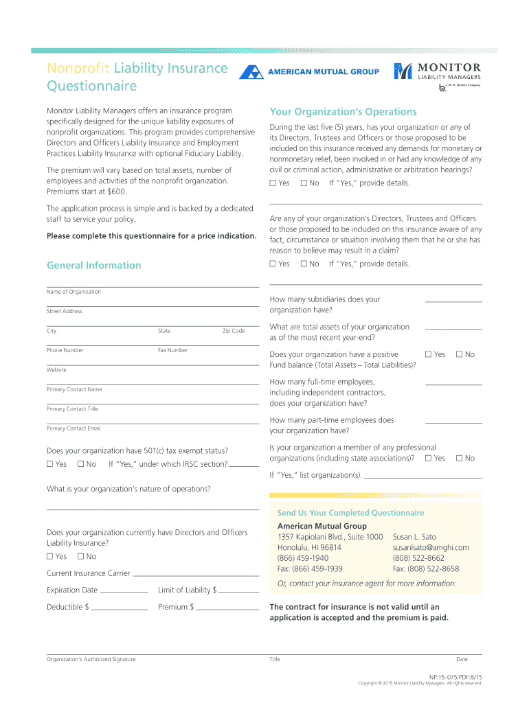 Get the free Nonprofit Liability (NP) Insurance protects the assets of a - hano-hawaii