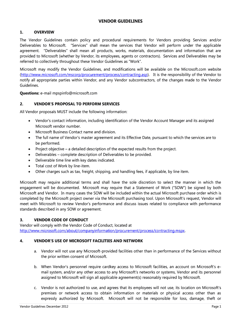 Get the free The Vendor Guidelines contain policy and procedural requirements for Vendors providi...