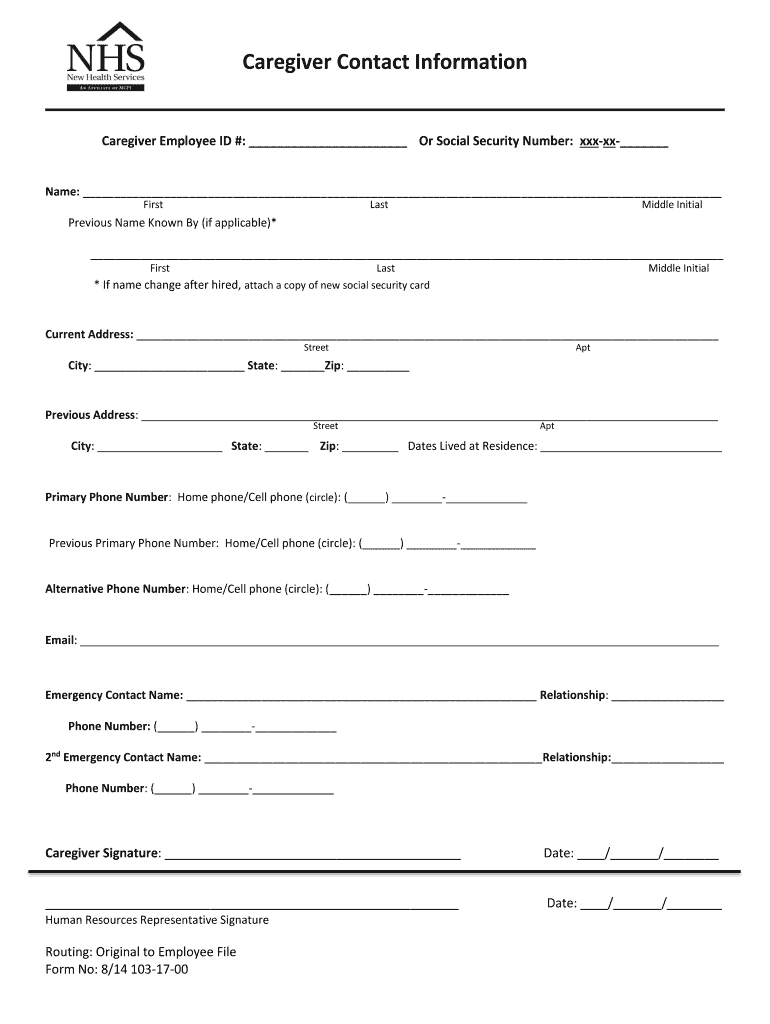 Form No: 8/14 1031700 Caregiver Employee ID #: Or Social Security Number: xxxix Name: ... 10/18/2016 10:40:14 AM ...