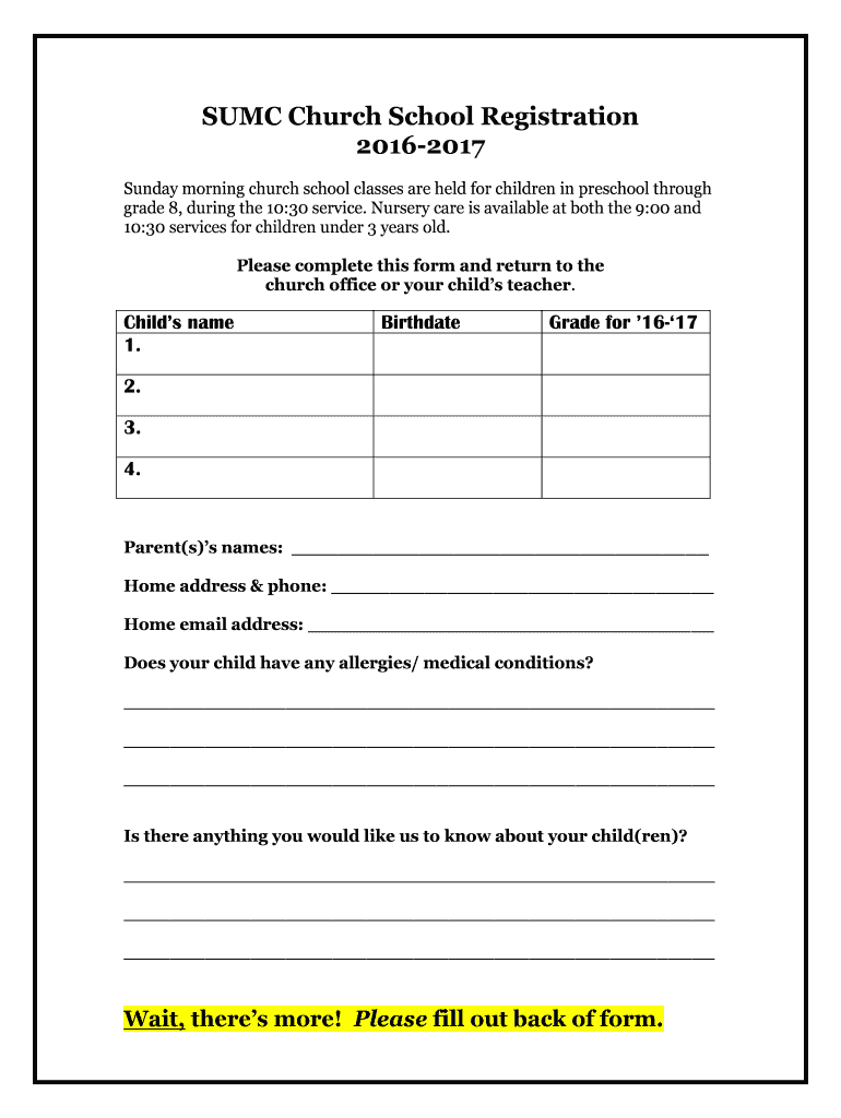 Get the free Church School Registration Form - Simsbury United Methodist Church - simsburyumc