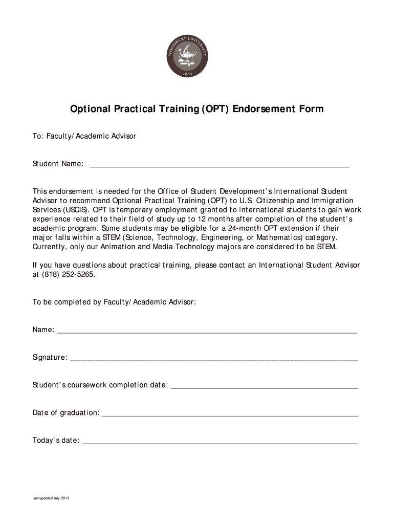 Get the free OPT Process and Endorsement