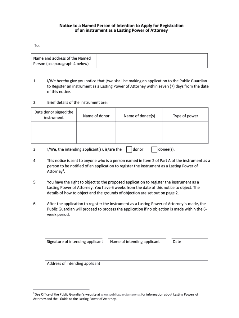 Get the free Notice to a Named Person of Intention to Apply for Registration