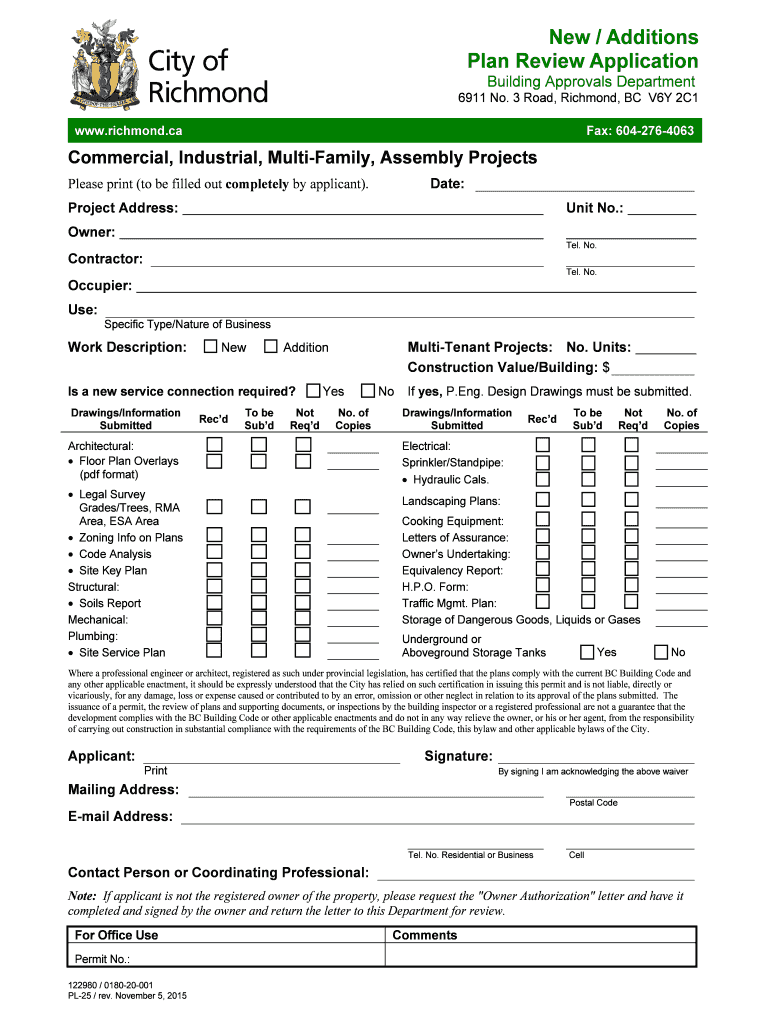 Get the free New / Additions Plan Review Application - Richmond - richmond