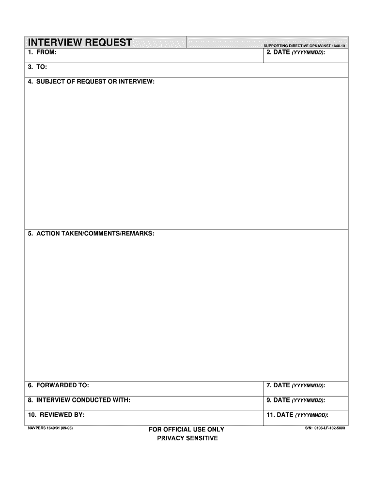 Service members who are requested to participate in an interview by the Navy are required to file navpers 164031 interview request.