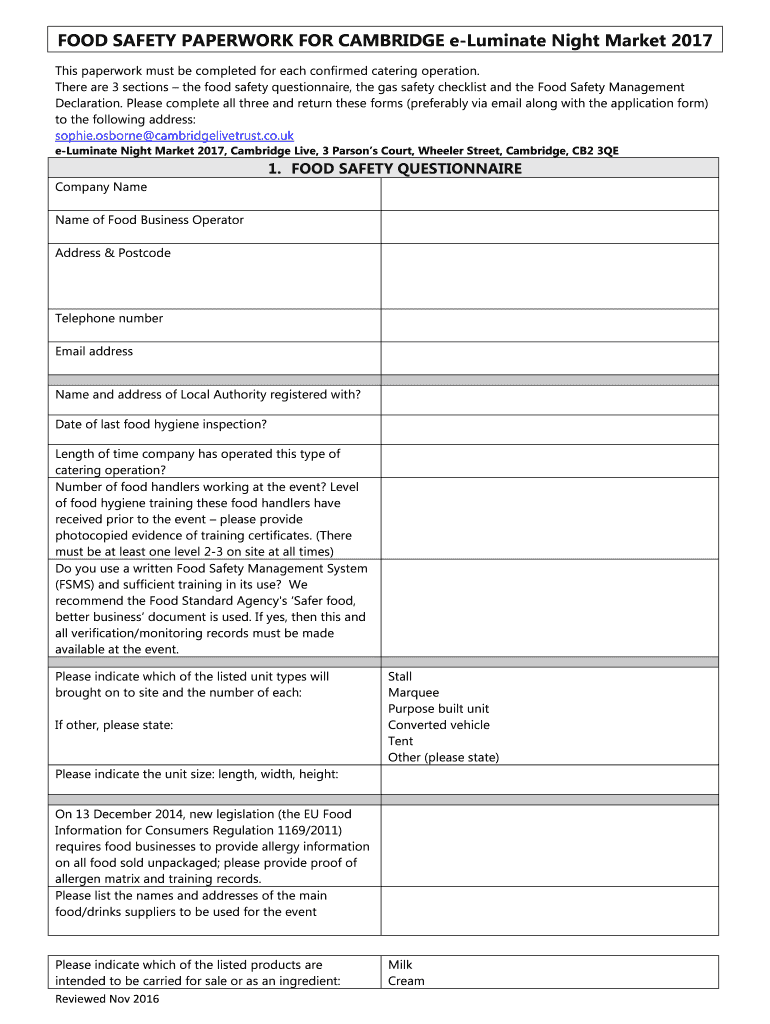 Get the free FOOD SAFETY QUESTIONNAIRE FOR EVENT CATERERS 200 - cambridgelivetrust co