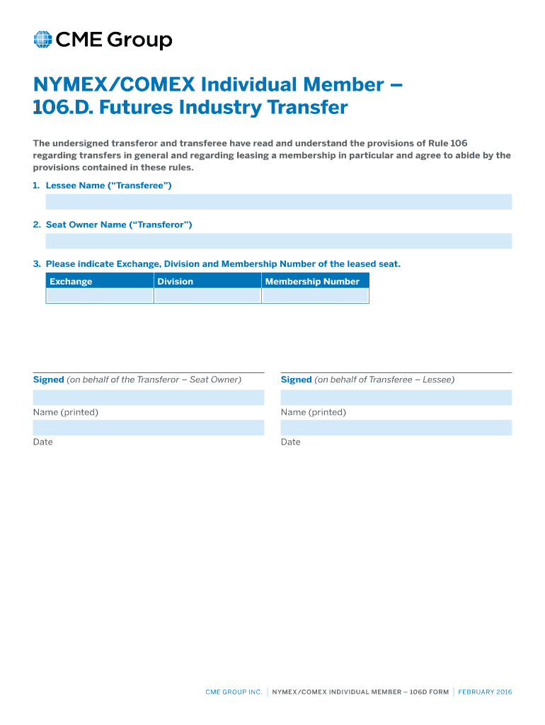 To fill out nymexcomex individual member, the individual member trader must provide all the required personal and trading information as requested by NYMEX and COMEX.