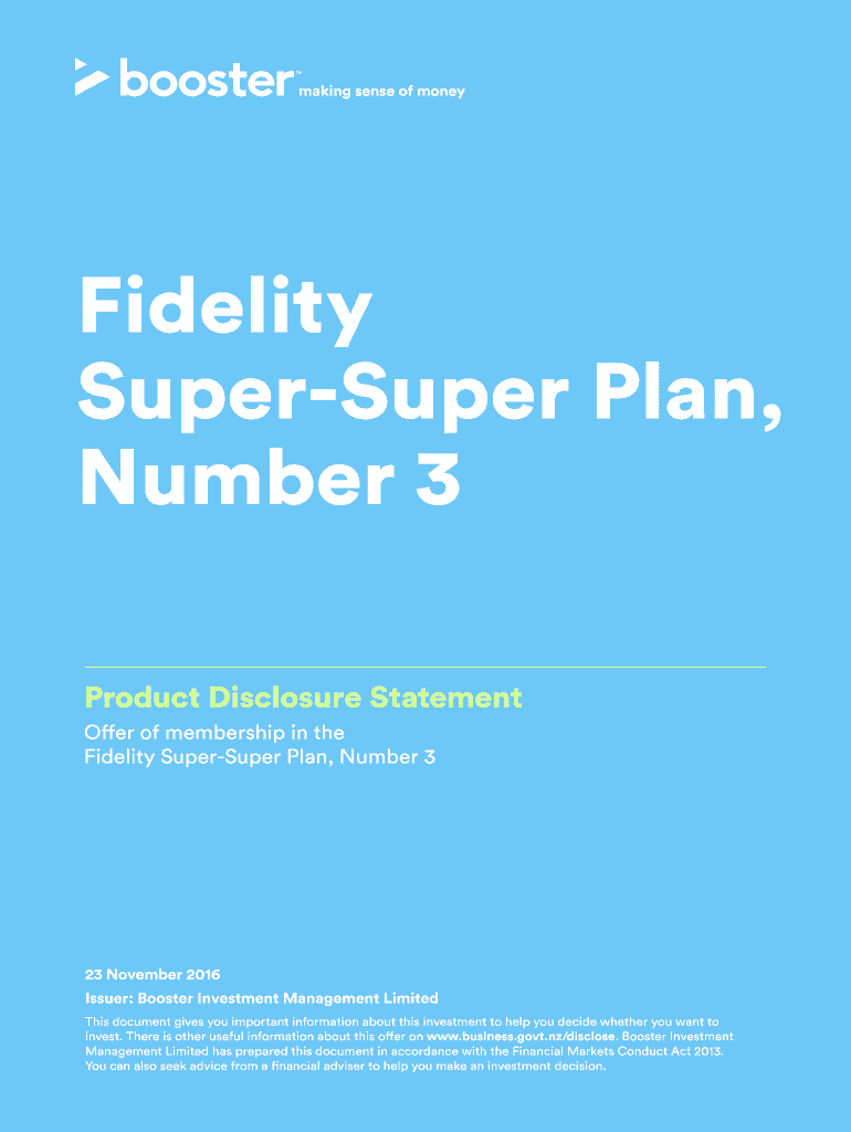 Fidelity Superuser Plan, Number 3 Product Disclosure Statement Over of membership in the Fidelity Superuser Plan, Number 3 23 November 2016 Issuer: Booster Investment Management Limited This document