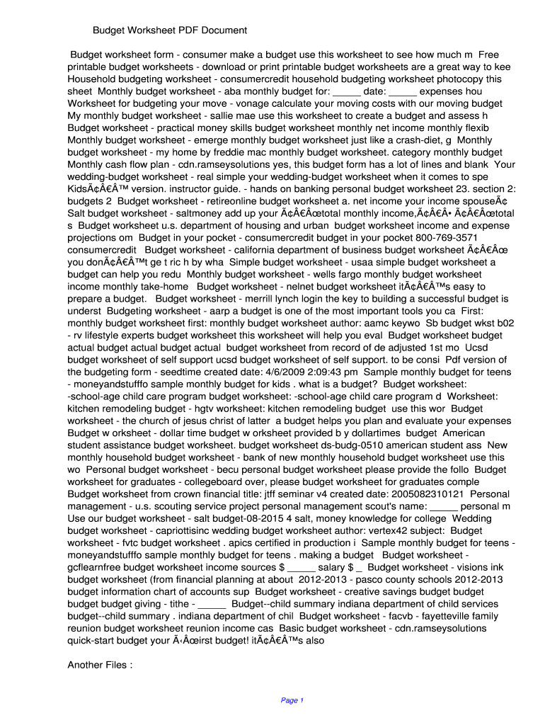 Budget Worksheet PDF Document Budget worksheet form consumer make a budget use this worksheet to see how much m Free printable budget worksheets download or print printable budget worksheets are a