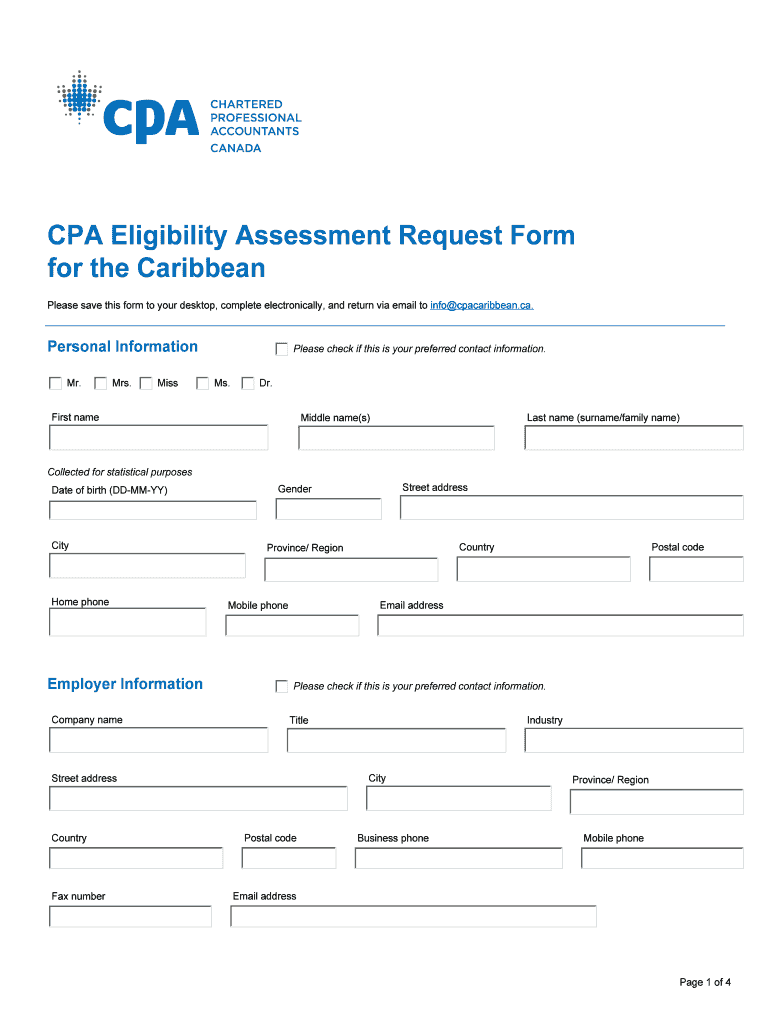 Step 1: Obtain the CPA eligibility assessment request form from the appropriate authority.