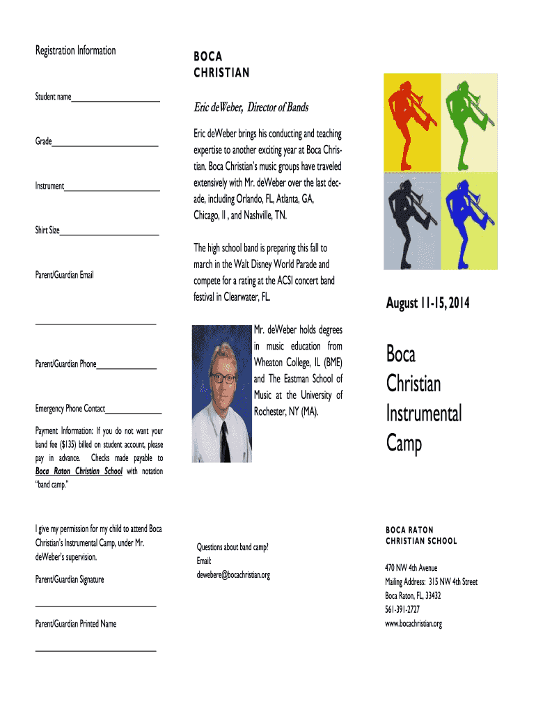 Registration Information Student name Grade Instrument COCA CHRISTIAN Eric December, Director of Bands Eric December brings his conducting and teaching expertise to another exciting year at Coca Christian.