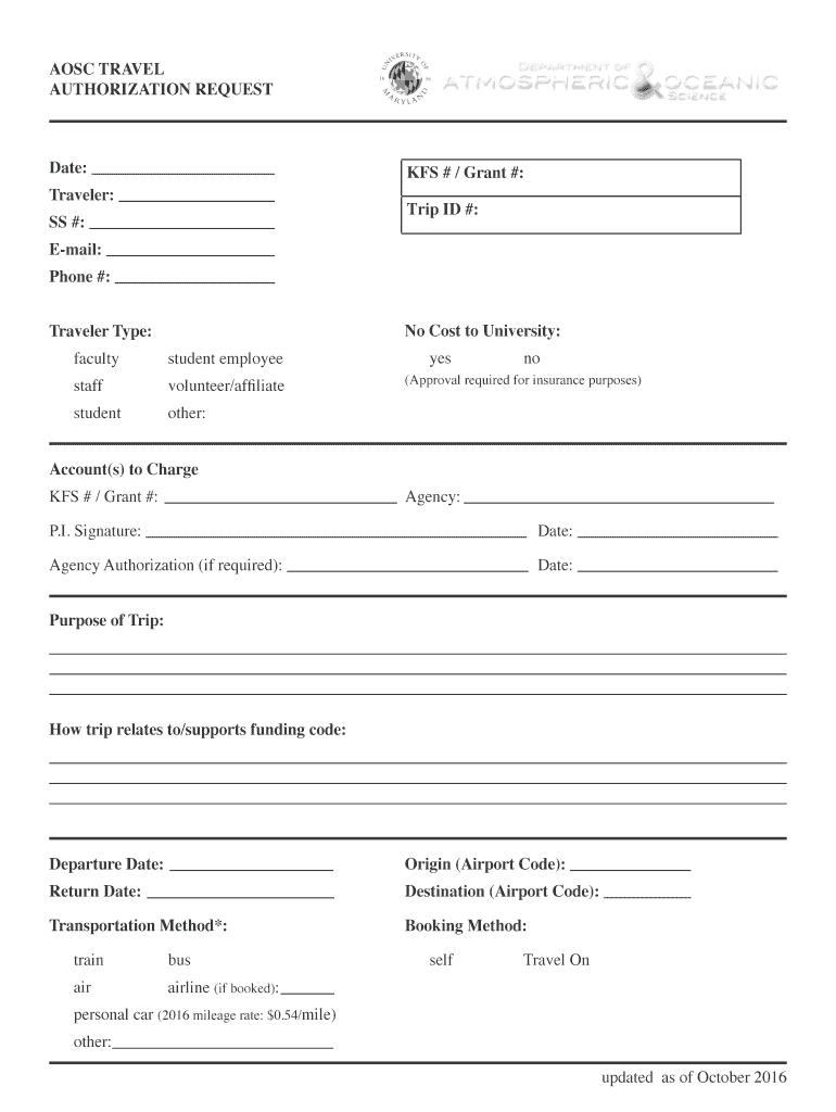 AOSC travel form must be completed online or through designated government channels with details of the trip, purpose, and traveler information.