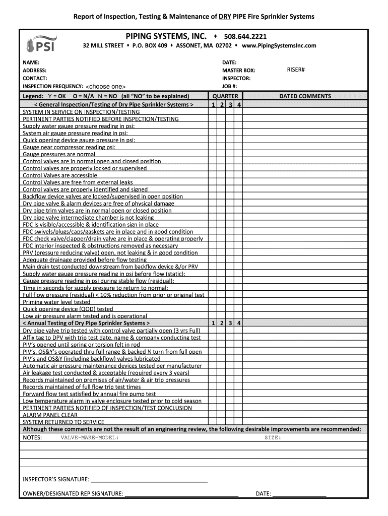 Get the free Dry Sprinkler System Inspection - Piping Systems, Inc.