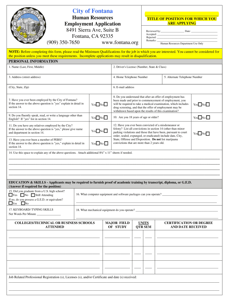 - Job applicants interested in working for the City of Fontana who are required to complete and submit a specific form as part of the application process.